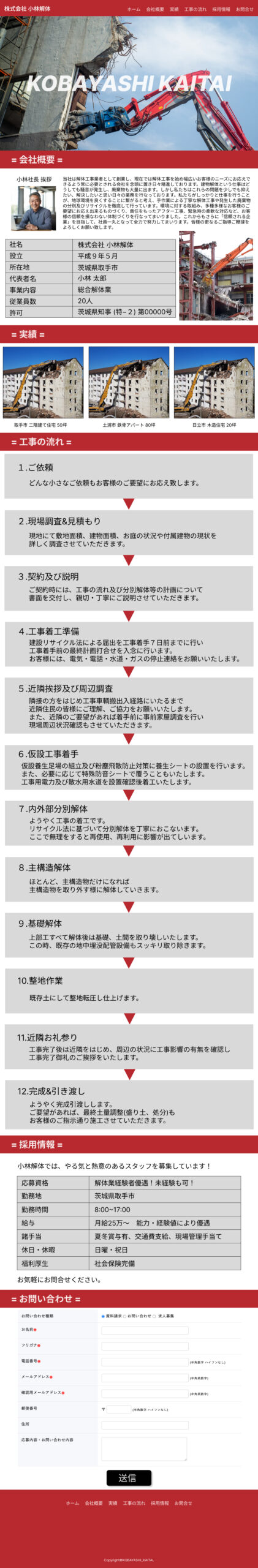 住宅解体業者のHP(デモページ) 投稿日 2024-05-09 更新日 2024-09-17 著者 chobe0517dayo カテゴリー HP URL 株式会社 小林解体chobe0517dayo.wixstudio.io 担当 デザイン・コーディング サイトの目的 会社の認知と集客を想定して作成しました。 使用技術 Figma/WIX デザインについて 同じようなデザインで、HPを作成することが可能です。 コーディングについて 価格を抑えるために、ノーコードツールを使用して作成しました。 pickup